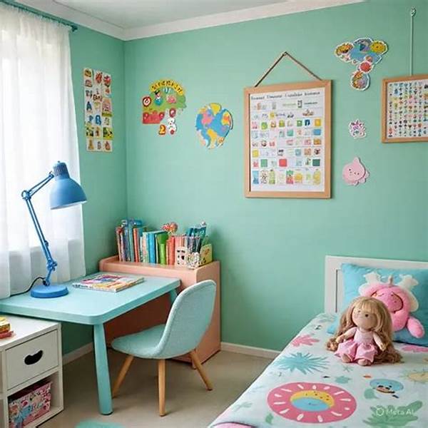 Dekorasi kamar anak yang ceria dan kreatif tidak hanya mengandalkan keindahan visual, tetapi juga nilai edukatif. Papan tulis kecil di sudut kamar atau stiker dinding alfabet dapat menjadi media belajar yang menyenangkan. Selain itu, mainan edukatif yang disusun rapi dapat menghias kamar sekaligus mengedukasi anak.