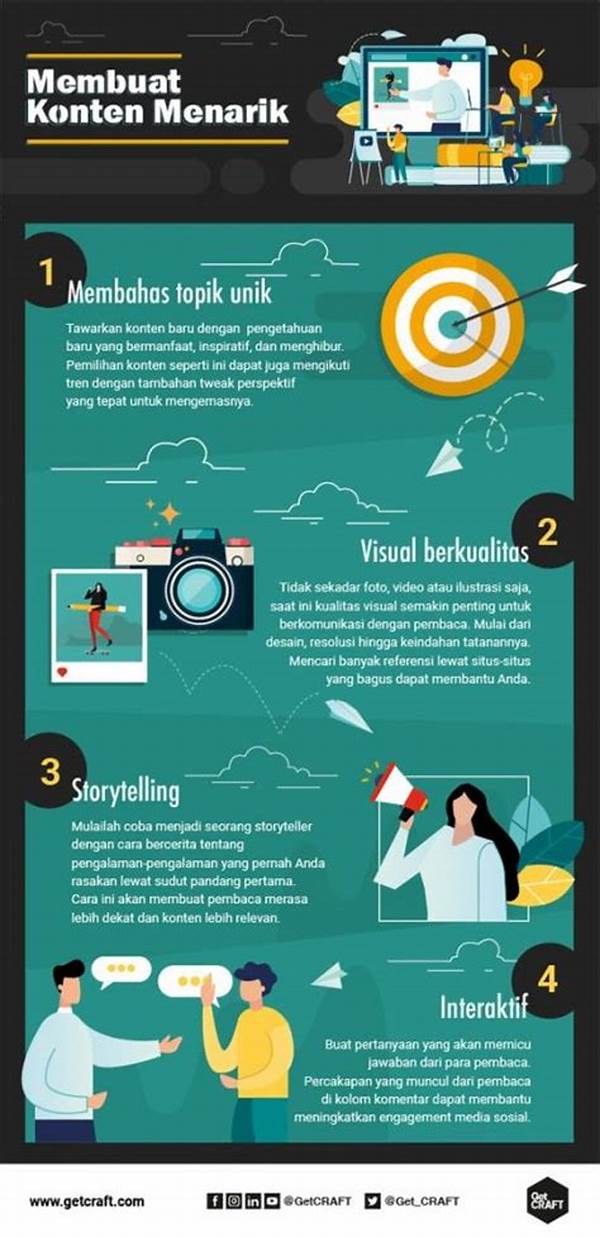 1. Sederhana Namun Padat: Hindari mengisi infografik dengan terlalu banyak informasi. Tetap fokus pada poin utama dan sampaikan dengan cara yang kreatif.
