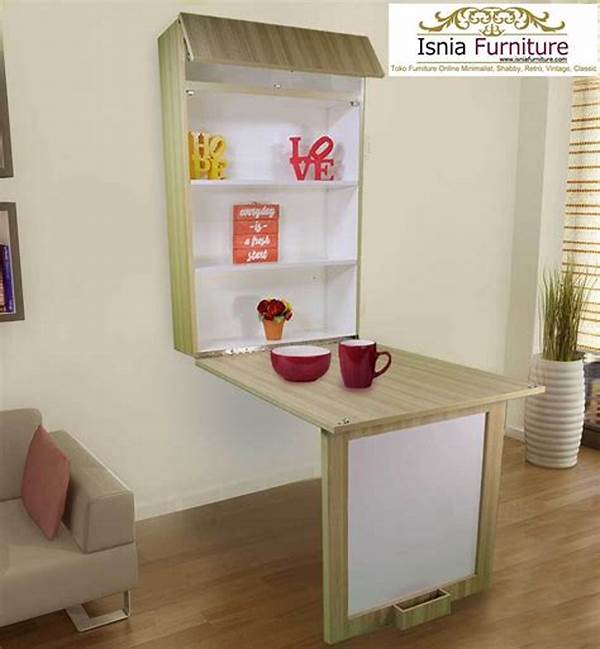 Kedua, mobilitas menjadi kelebihan desain ini. Meja lipat yang dirancang dengan material ringan seperti aluminium atau kayu kualitas tinggi dapat dengan mudah dipindahkan. Contohnya, seorang pekerja lepas bisa mengubah ruang tamu menjadi ruang kerja yang produktif dalam hitungan menit.