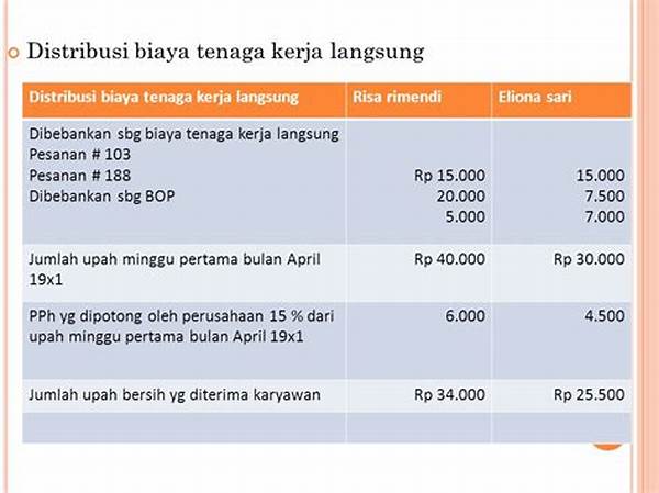 Perhitungan biaya upah tenaga kerja adalah bagian krusial dalam pengelolaan keuangan perusahaan. Dengan memahami besaran biaya yang dikeluarkan untuk upah, perusahaan dapat mengelola anggaran lebih efisien. Sebagai contoh, sebuah perusahaan manufaktur dengan 100 karyawan penuh waktu, yang masing-masing digaji rata-rata Rp 5 juta per bulan, memiliki total biaya upah sebesar Rp 500 juta per bulan. Biaya ini harus diperhitungkan dengan cermat agar perusahaan tidak mengalami defisit. Selain gaji pokok, perusahaan juga perlu menghitung tunjangan dan bonus, yang dapat meningkatkan total biaya upah tenaga kerja sebesar 20%. Jadi, perhitungan yang tepat tidak hanya memastikan karyawan dibayar dengan adil, tetapi juga menjaga kesehatan finansial perusahaan.